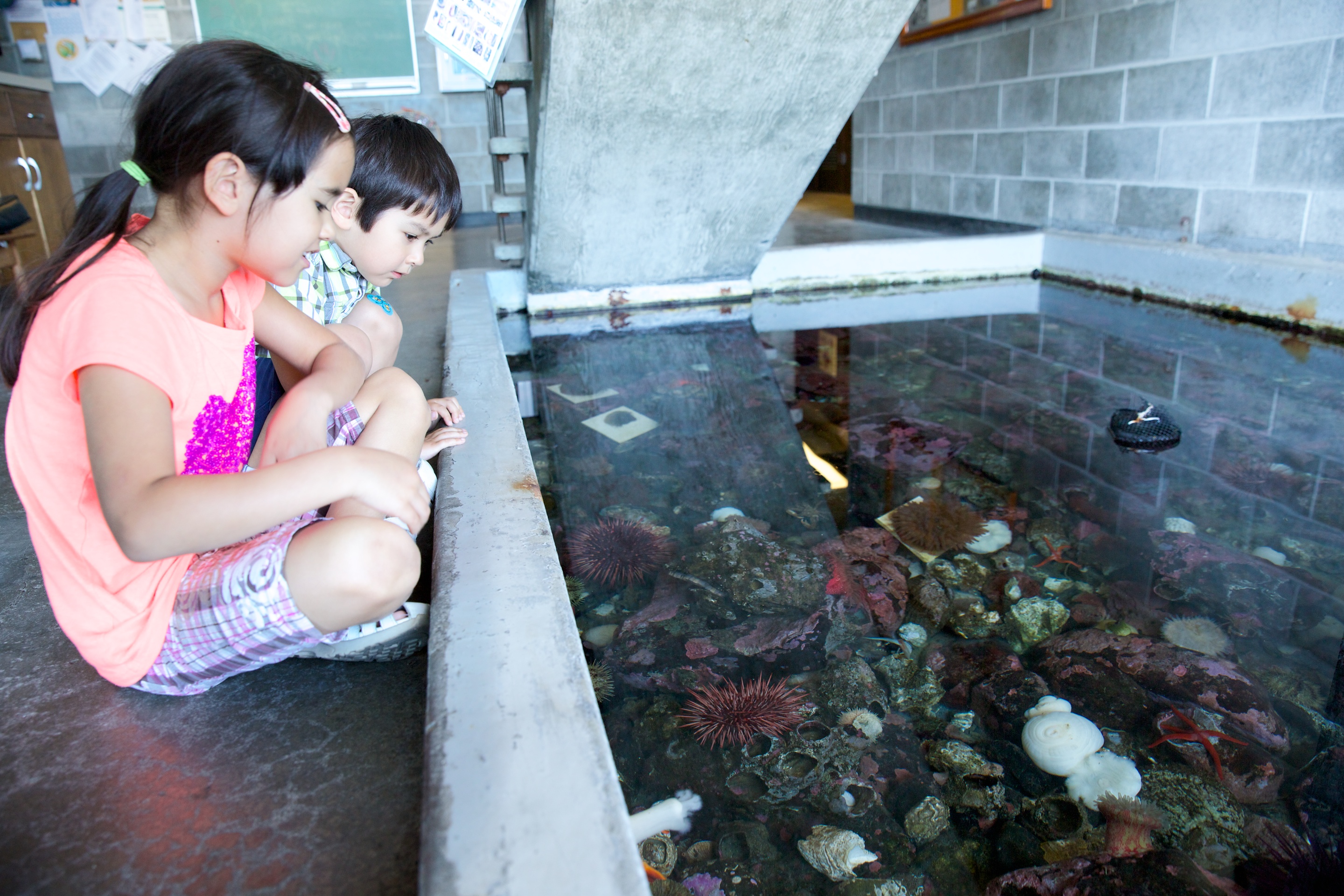 There is a small pool in the lobby of the main lab building, where visitors can see some of the creatures that live in the waters.